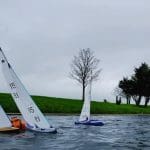 We had a Northerly breeze of about 5 knots so we set up on the South side of the lake. With a short windward leg, we set three laps of triangle, sausage, triangle. This also helped us to remember what lap were on! There were occasional gusts of about 15 knots which also brought big wind shifts.